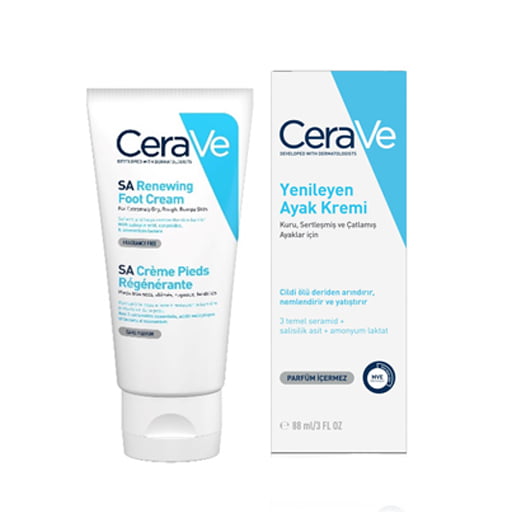 Cerave Yenileyen Ayak Kremi’nin dermatologlar ile geliştirilen formülü cilt için gerekli seramidler, salisilik asit ve amonyum laktat içerir. Cildi ölü deriden arındırır, nemlendirir ve yatıştırır. Cildi yumuşatırken koruyucu bariyerin onarılmasına yardımcı olur. Parfüm içermeyen formülü hassas ciltler için uygundur. Cerave Yenileyen Ayak Kremi Kuru, sertleşmiş ve çatlamış ayaklar için kullanılır.