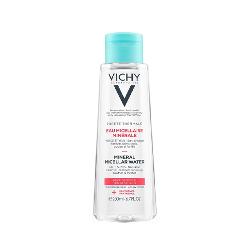 Vichy Purete Thermale Mineral Misel Su, Vichy Volkanik Suyu ve Pantenol ile zenginleştirilmiş güçlü temizleyici misel sudur. Makyaj kalıntılarını, fazla sebumu ve ciltteki kiri temizler.